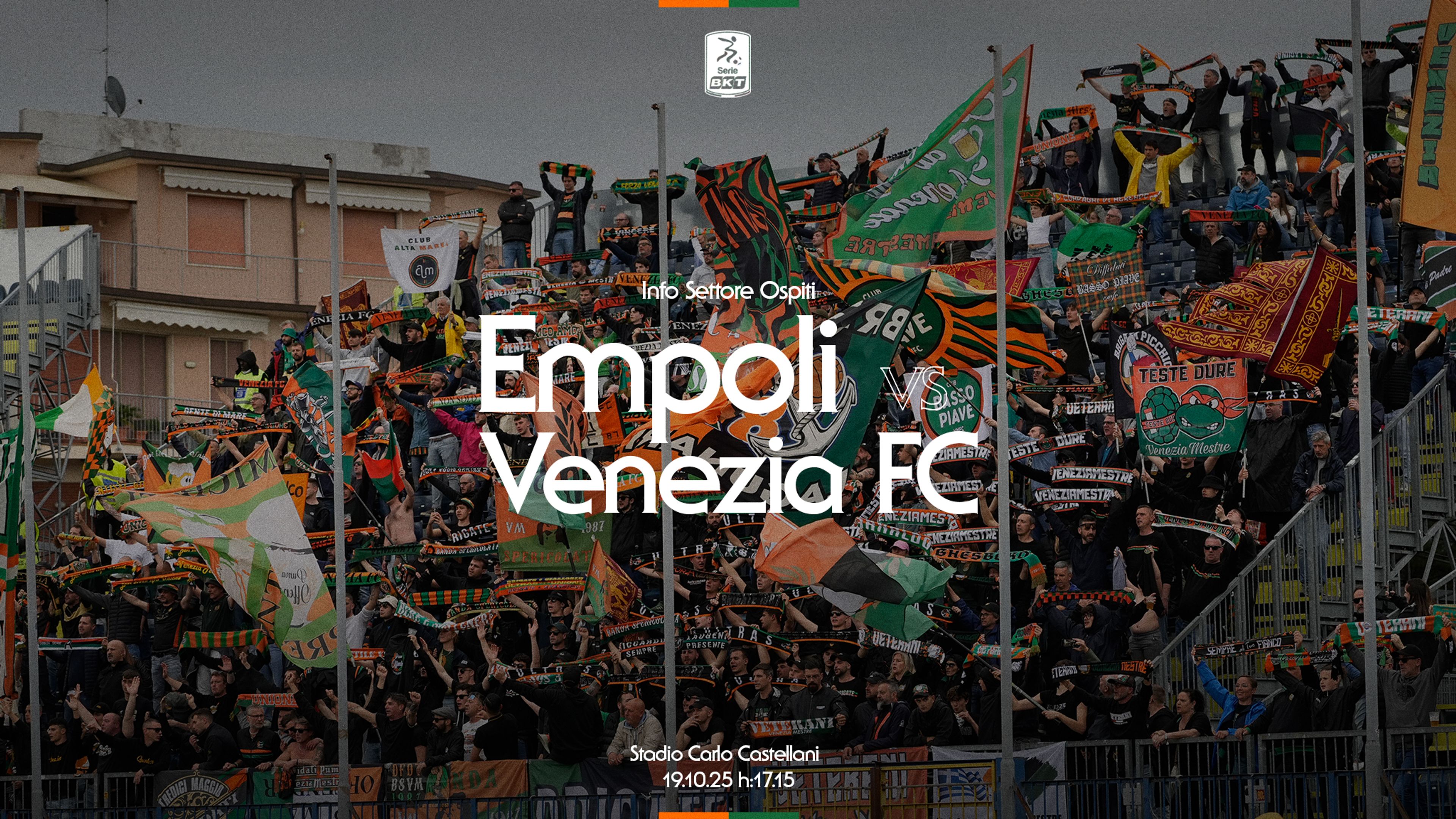 Venezia FC comunica che dalle ore 16:00 di martedì 14 ottobre sarà attiva la prevendita per il settore ospiti per la gara Empoli-Venezia FC, valevole per la giornata 8 del campionato di Serie BKT 2025/26. L’incontro si disputerà allo Computer Gross Area di Empoli, domenica 19 ottobre alle ore 17:15.